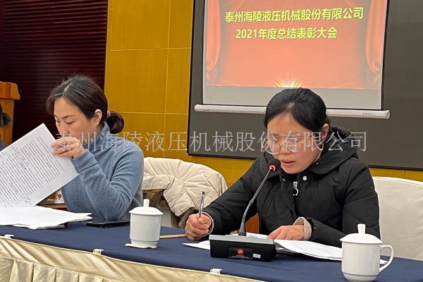 董事長丁克芳主持會議并作出重要指示:2021年注定是一個不平凡的一年,全體職工不畏艱難,抗擊疫情;無私奉獻,迎難而上;一步一個腳印為公司的穩(wěn)步發(fā)展做出巨大貢獻。在外部環(huán)境極為艱難的情況下,使公司業(yè)績逐步穩(wěn)定增長,邁上新的臺階!企業(yè)客戶受眾面大幅擴展,得到越來越多的認可,這些都離不開全體職工的辛勤奉獻!在新的一年中海陵液壓將繼續(xù)精益求精,升級技術(shù)、優(yōu)化創(chuàng)新產(chǎn)品;加大研發(fā)力度,加大研發(fā)資金投入;加快產(chǎn)品升級、更新?lián)Q代的步伐;堅持科學(xué)發(fā)展,注重安全生產(chǎn);提高職工的福利待遇,提升職工技能素養(yǎng)!在往后的工作中,不斷提升企業(yè)品牌、為客戶創(chuàng)造價值。這也是全體海陵人的不懈追求!