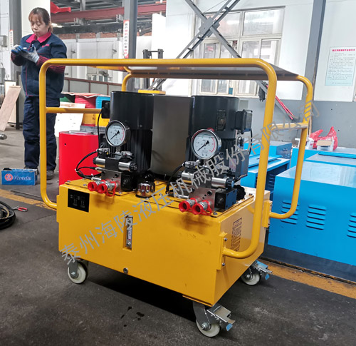 我公司生產(chǎn)的超高壓泵站采用符合液壓系統(tǒng)要求的液壓油作媒介,由電機(jī)經(jīng)泵柱塞泵送出符合要求流量與壓力,供液壓系統(tǒng)使用。
