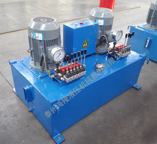 我公司生產(chǎn)的中壓泵站采用符合液壓系統(tǒng)要求的液壓油作介質(zhì),由電機(jī)經(jīng)泵柱塞泵送出符合要求流量與壓力,供液壓系統(tǒng)使用。主要由三相電機(jī)、變量柱塞泵、三聯(lián)多路手動(dòng)換向閥、內(nèi)置式溢流閥、油箱、等部件組成,具有調(diào)壓、過載保護(hù)等功能,為設(shè)備提供液壓動(dòng)力源。