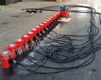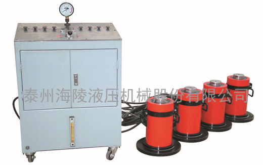 我公司設(shè)計(jì)制造的(PLC)同步千斤頂廣泛適用于大型建筑工程設(shè)備,構(gòu)件的同步起頂、調(diào)整及鐵路、公路、橋梁工程的架設(shè)。它可根據(jù)現(xiàn)場(chǎng)的實(shí)際情況選配不同規(guī)格、型號(hào)、數(shù)量的超薄型JRSM系列、薄型JRCS系列、大噸位DYG系列10T、20T、30T、50T、100T、150T、200T、320T、500T千斤頂。以及配備1.1KW、2.2KW、3KW、4KW、5.5KW、7.5KW、13KW等不同規(guī)格的泵站,同時(shí)配備不同長(zhǎng)度的高壓油管和合適的分配閥,采用一泵拖多頂?shù)姆椒ㄒ詽M足適應(yīng)施工現(xiàn)場(chǎng)的作業(yè)要求。