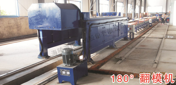 1. 翻轉(zhuǎn)裝置:用于將混凝土構(gòu)件翻轉(zhuǎn),以便進行脫模操作。它通常由液壓缸或電動機驅(qū)動,可以旋轉(zhuǎn)一定角度,將混凝土構(gòu)件從水平位置翻轉(zhuǎn)到垂直位置。
